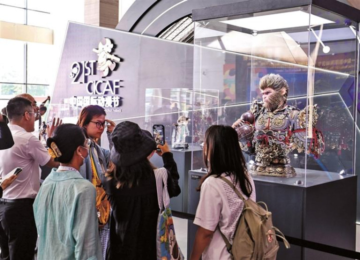 3A游戏《黑神话:悟空》受到无数受众追捧。观众参观黑神话悟空主题展陈。新华社发