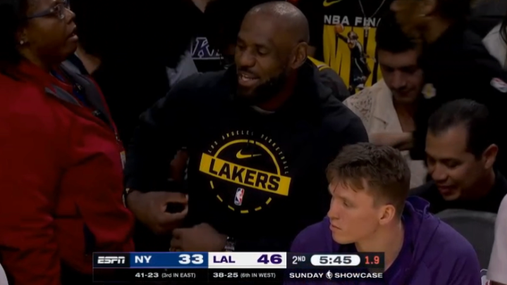 詹姆斯因伤缺战尼克斯,他身穿湖东说念主检修服坐在替补席不雅战,比赛暂停时期,湖东说念主官方在主场祝愿詹姆斯加冕NBA历史进球王,全场球迷为他欣忭高唱,老詹挥手感谢球迷。