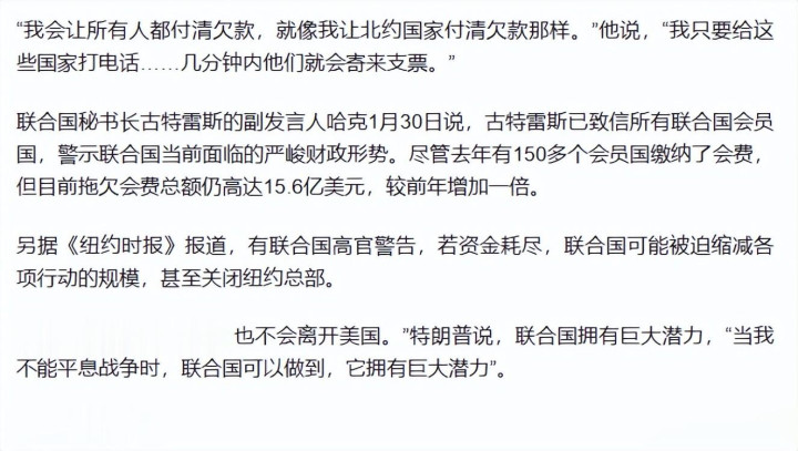 要知道联合国的收入高度依赖各国的会费分摊,短期内根本找不到其他方式填补巨大的资金缺口。