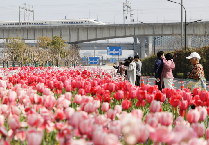 杭州平澜路沿线绿化带因郁金香、紫罗兰等花草构成的倨傲花海在社交平台刷屏,被网友誉为杭州“最好意思绿化带”。图源:视觉中国